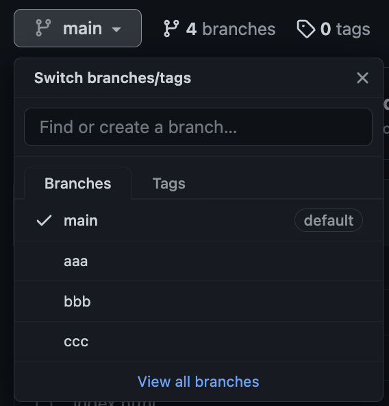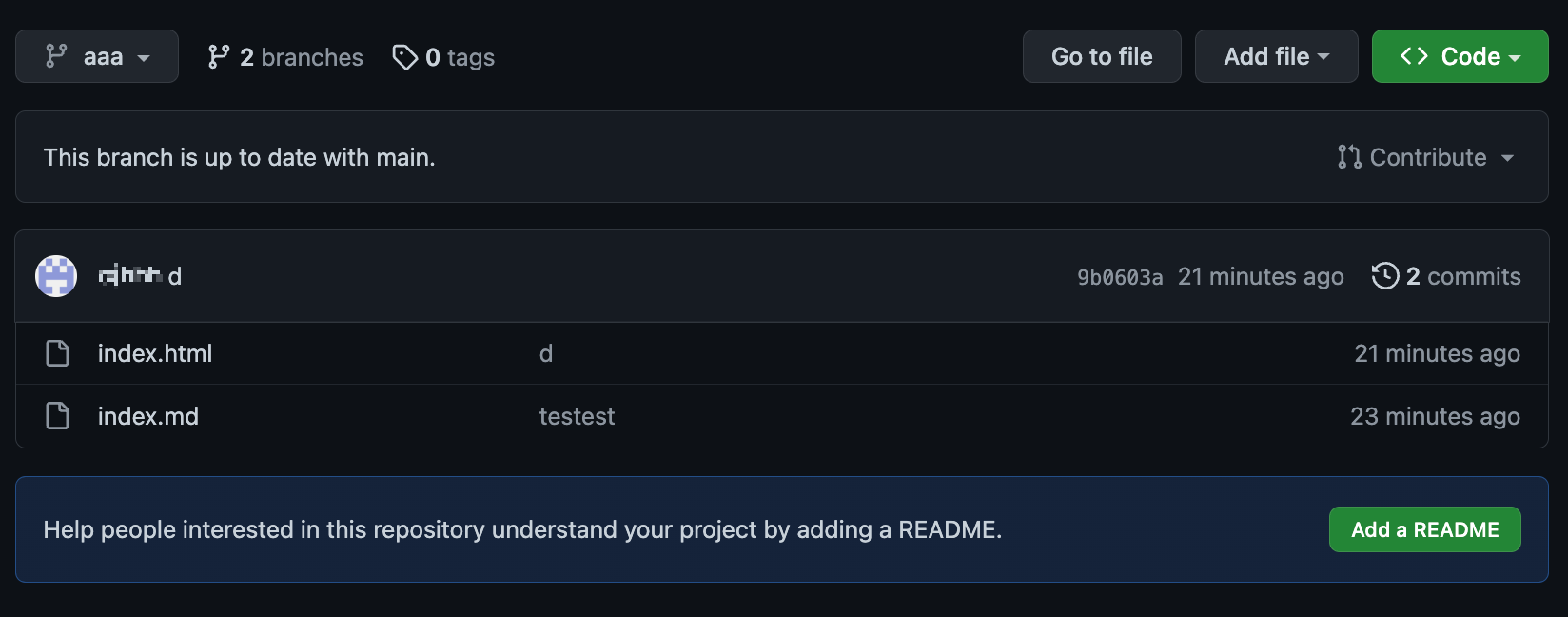 - branch 이름은 aaa로 만들었고 위의 과정을 거쳐 github에 브런치가 생성 확인