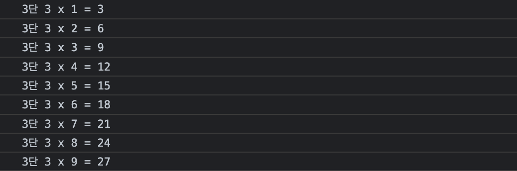 console.log(`${num}단 ${num} x ${i} = ${num * i}`);