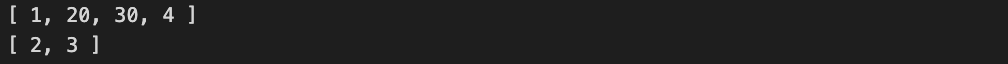 // 1, 2번 인덱스를 제거하고 20과 30을 추가