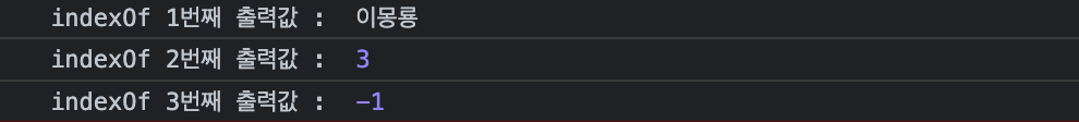 console.log("indexOf 3번째 출력값 : ", pp.indexOf("오또"));