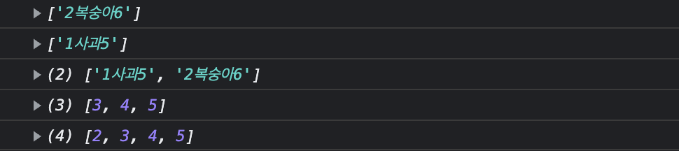 let nfruit = ["1사과5", "2복숭아6", "3배7", "4감8"];