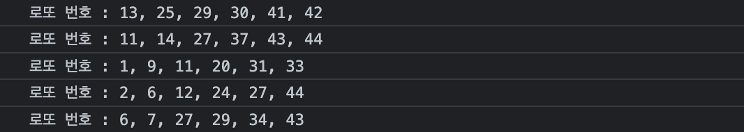 console.log("로또 번호 : " + lotto.join(", "));