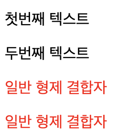 - 일반 형제 결합자. 기호 -> ~