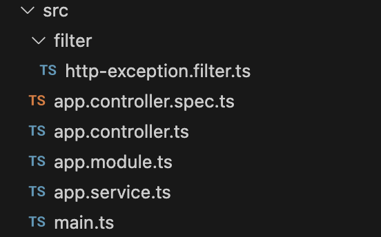 기본으로 build-in 되어 있는 Filter가 있지만 내가 원하는 형식으로 만들어서 사용하기 쉽기 때문에 기본 코드를 통해 Filter를 알아보겠습니다. 해당 코드는 Nestjs 공식 문서에도 나와있는 코드로 기본 코드이며 해당 코드를 보며 어떤 코드로 구성되어 있는지 알아보겠습니다.