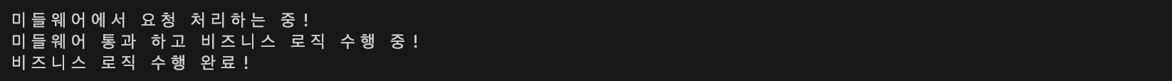 console.log('미들웨어 통과 하고 비즈니스 로직 수행 중!');