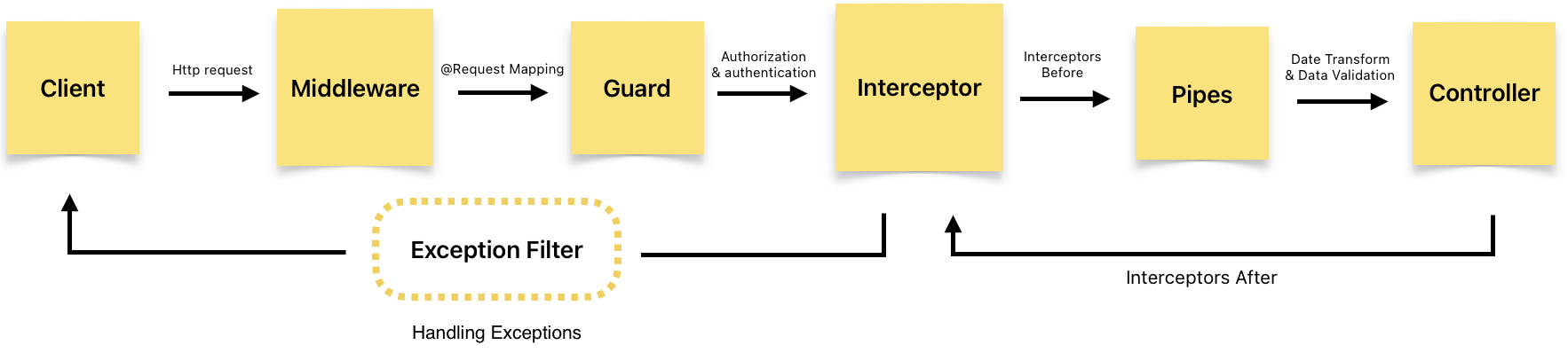 최종적으로 Middleware가 모든 요청을 처리한 후 라우터 핸들러에 도달하여 비즈니스 로직을 처리하게 됩니다.
