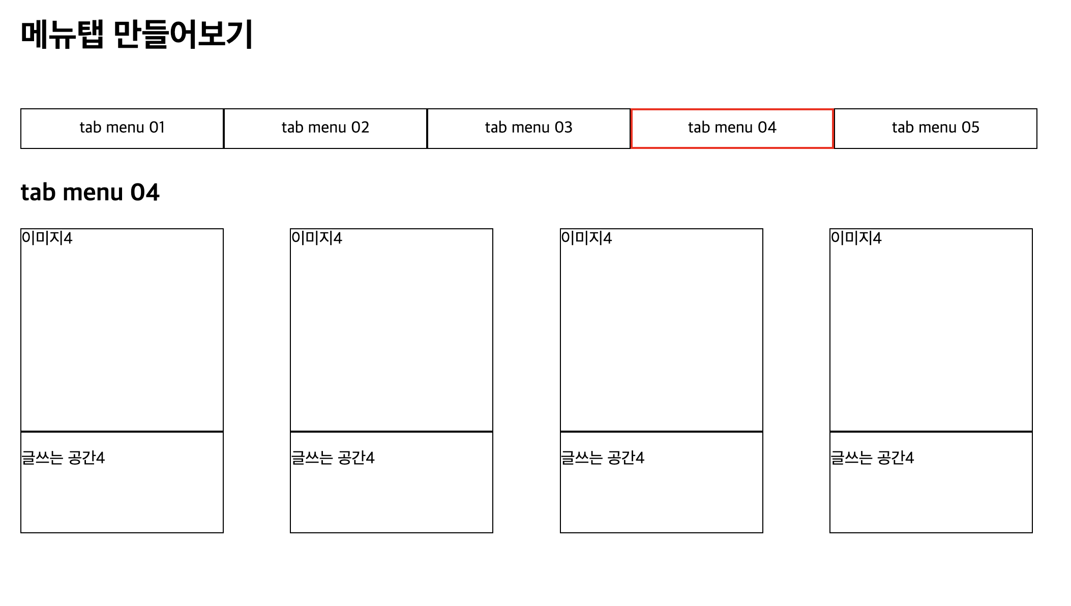 radio의 특징은 여러개 중 1개 밖에 선택 할 수 없는 것이고 이것을 활용하여 checked 되어 있는 태그만 활성화하고 나머지는 숨겨 두는 방식으로 실습을 진행해 본다.